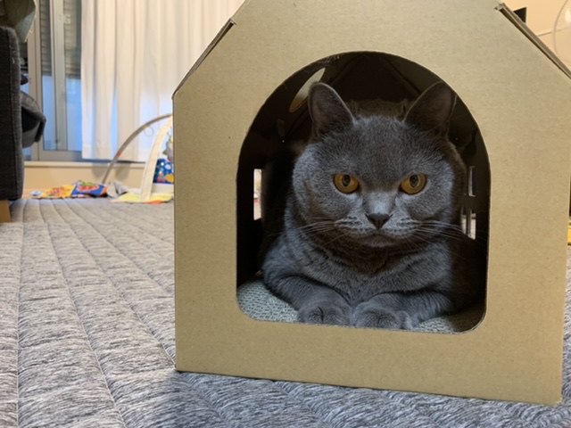 自然に近い素材だから段ボールが好きと言いますが…とにかく落ち着いています笑