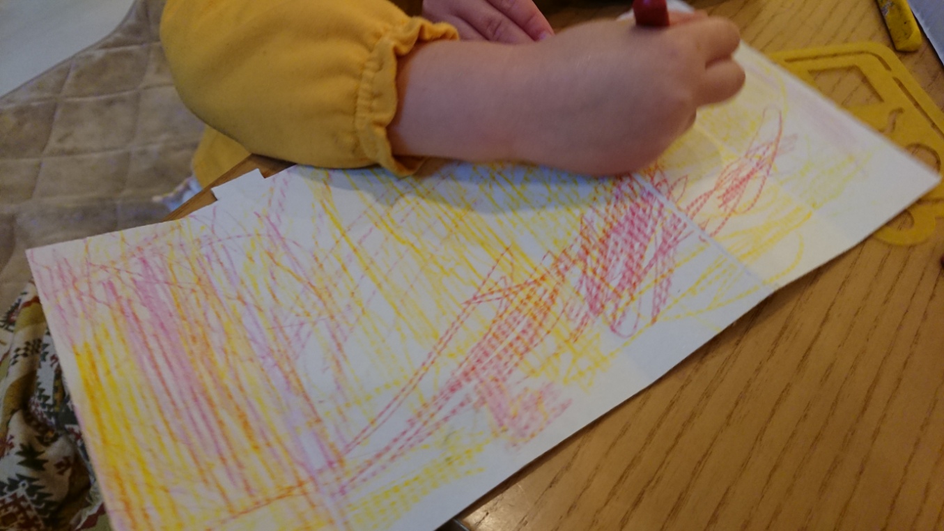 「この紙音がなる〜〜!」と言いながら、力強く楽しそうに塗っていました。