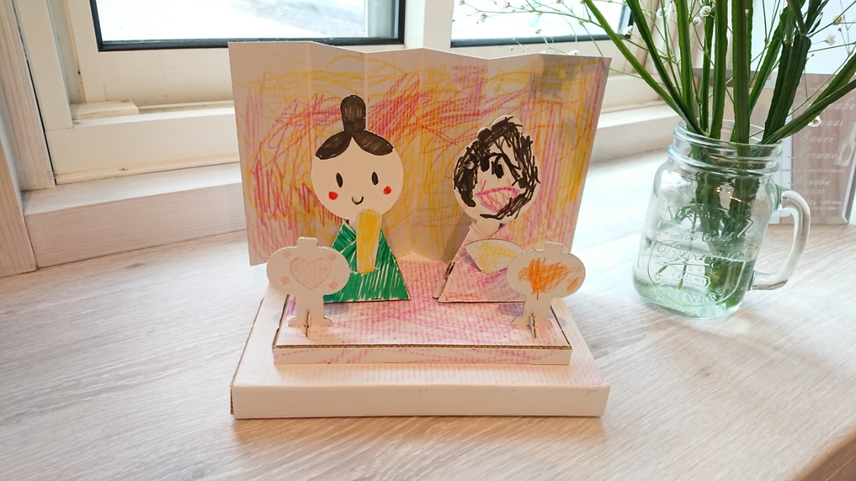 完成を見た主人や高1長女は「おだいり様とバケモノ(笑)」とからかって名付けていましたが、ちゃんと顔が描けていることに、次女の成長を感じたみたいでしたよ。