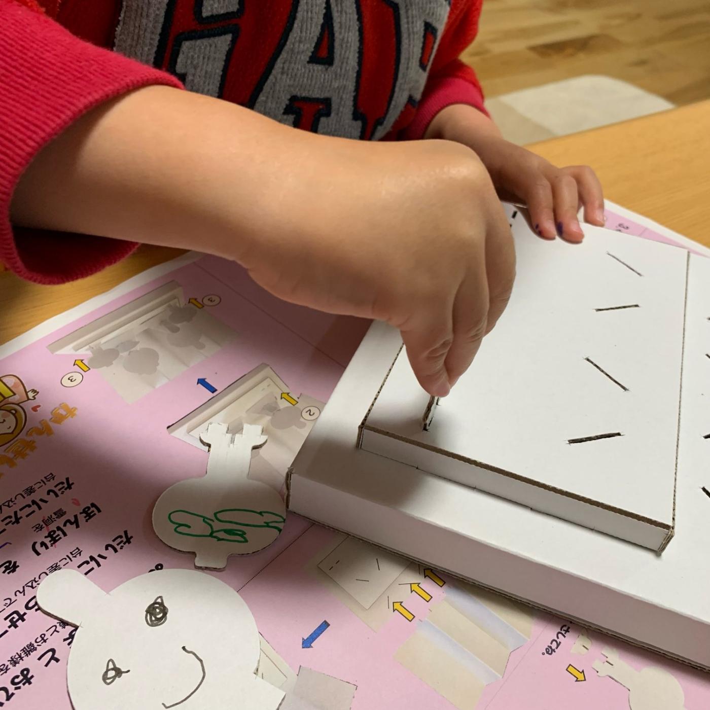 まだひらがなが読めない3歳児には説明書見ながら自分で作るのは難しかったですが、