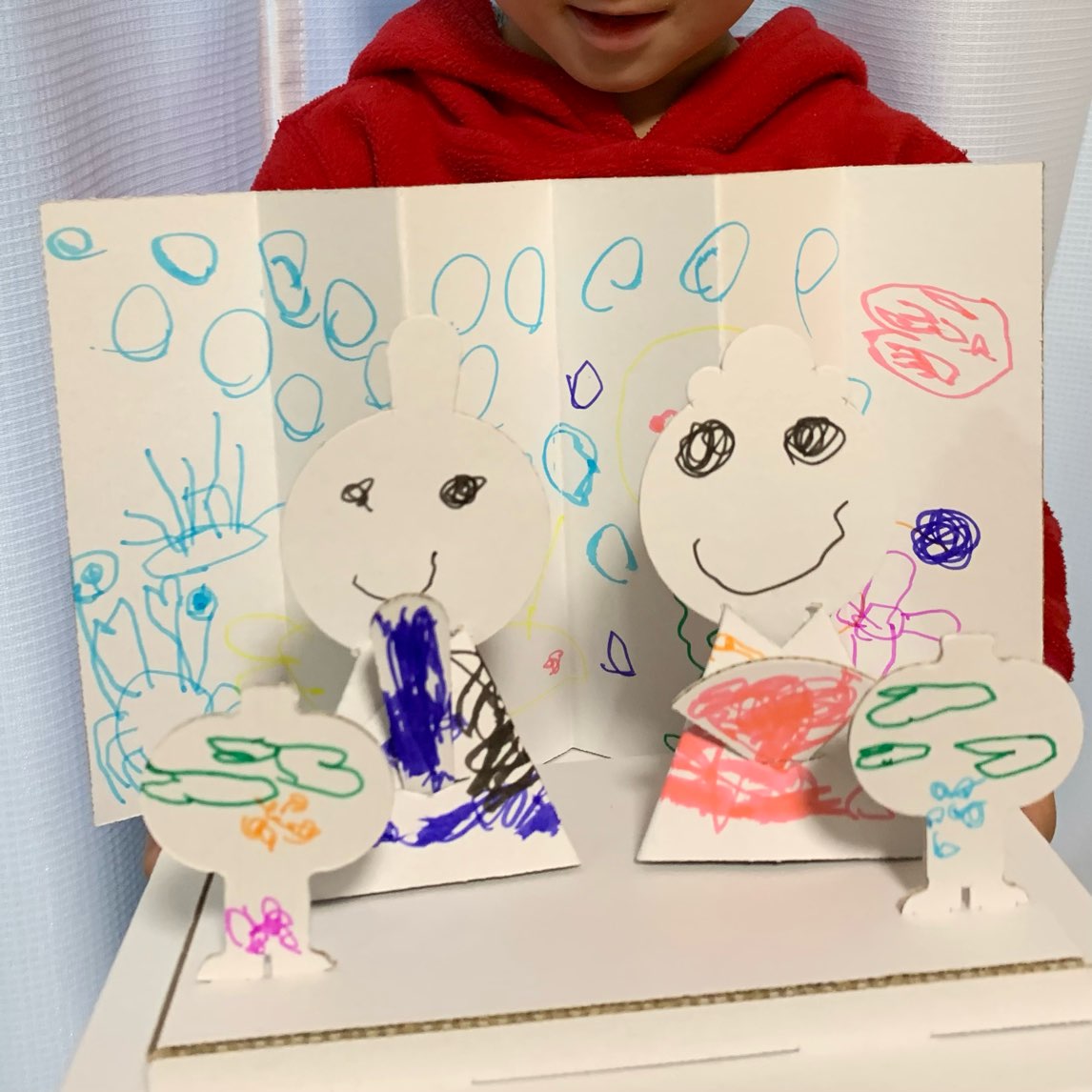 3歳のつたないお絵描きでも立体なので見栄えしますね。