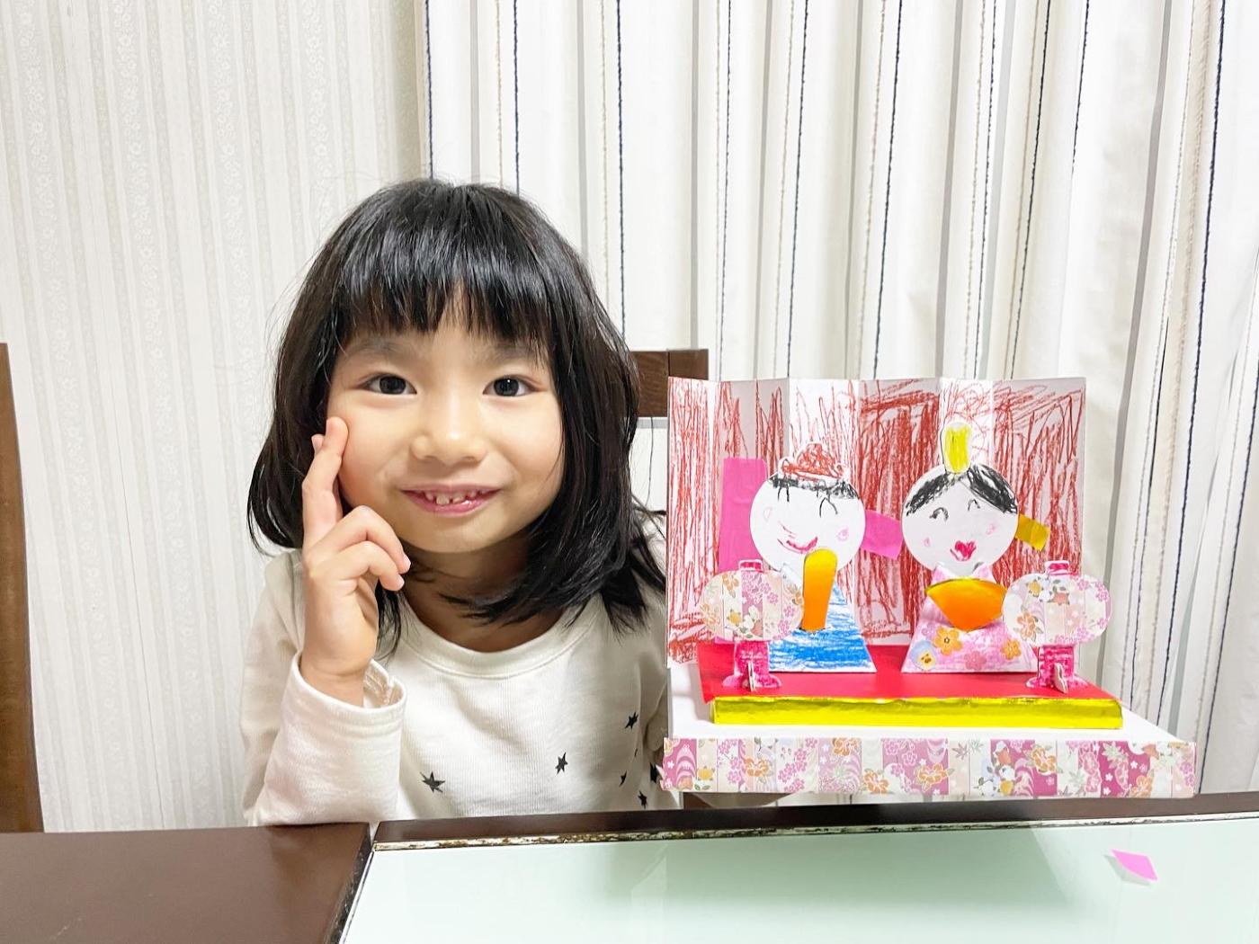 自分で作ったひな人形なので、パパにも自慢してました♪