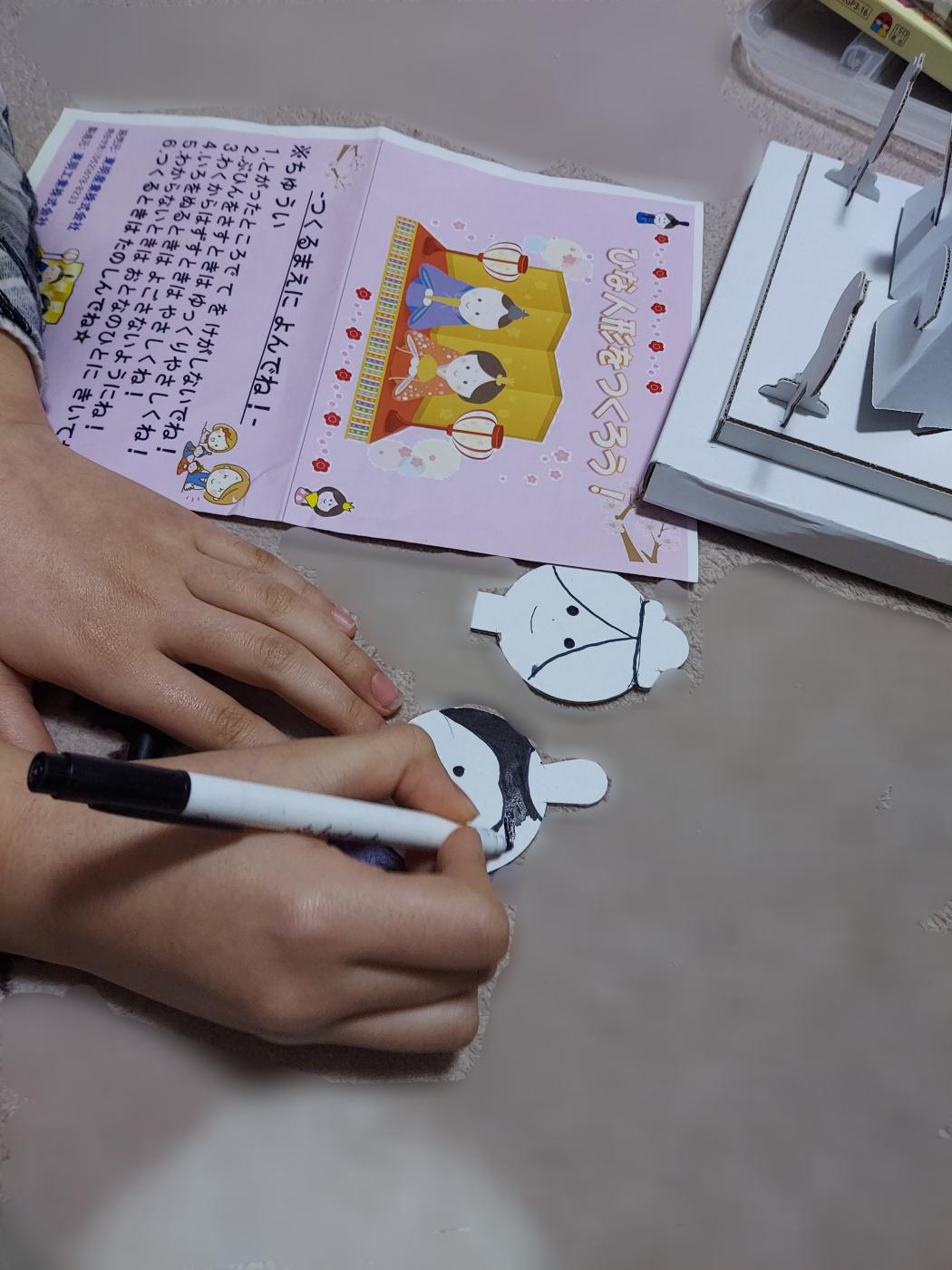 自分のひな人形を自分好みに作れるので、失敗しないように慎重に描いてるようです😆🎵