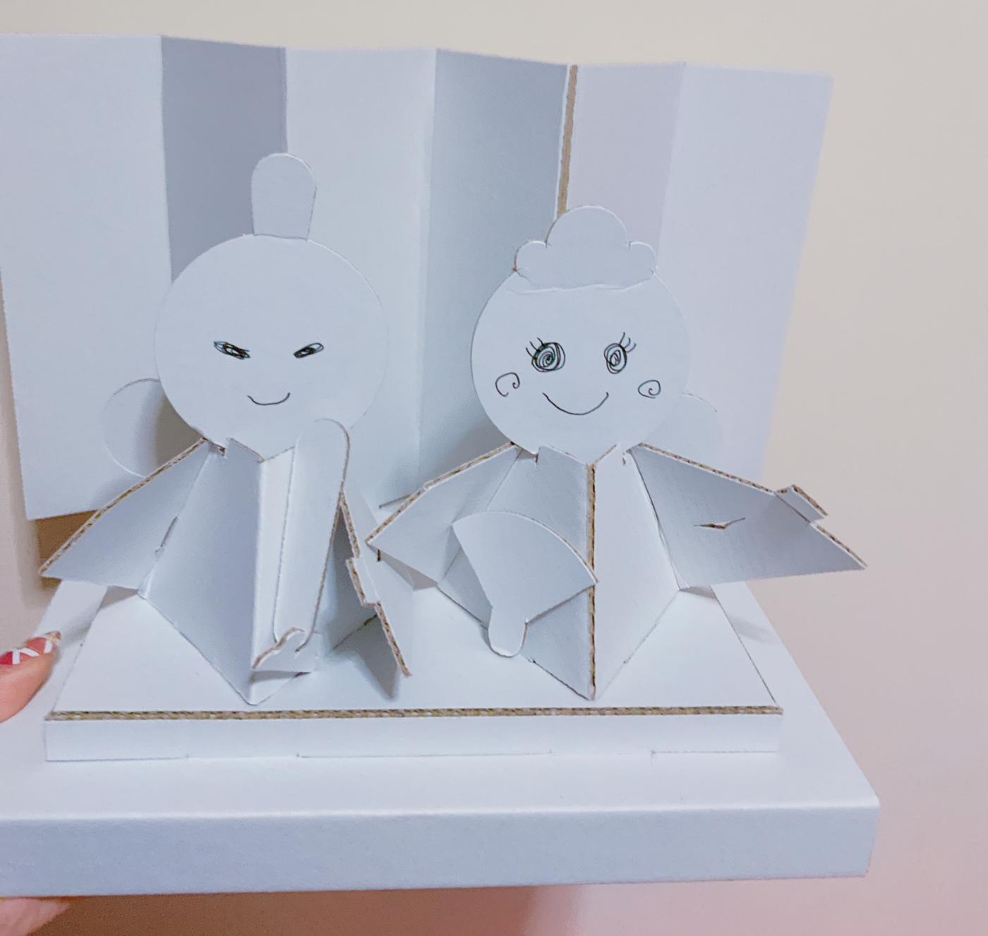 白ダンボール製の組立式ひな人形キットです! 色を塗って組み立てることでオリジナルの雛人形を作るこ...