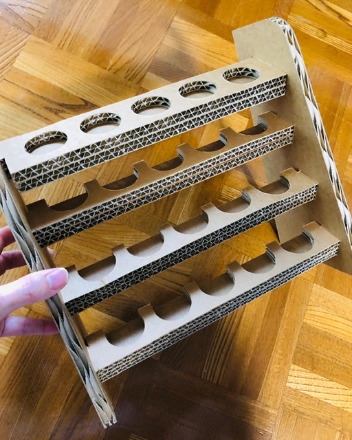 耐水性がある強化段ボール製で、20個の塗料を並べる事が出来るそうです