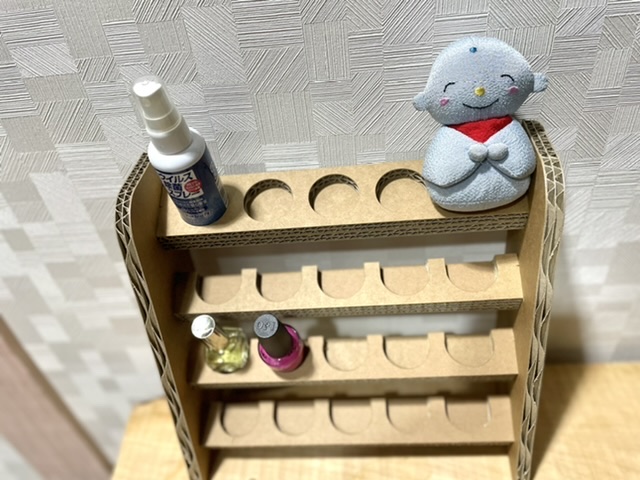 プラモデル等の塗料を置くために作られたダンボール製の塗料用ラックなんですよ〜😊