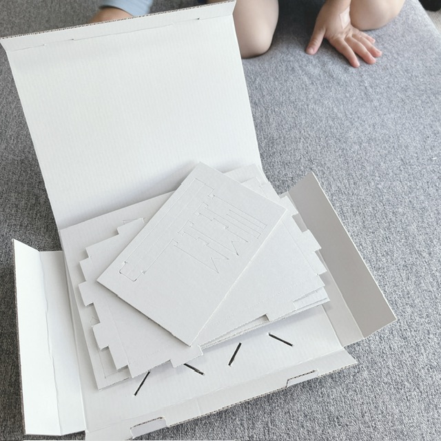 ダンボール素材なので、折り目をつけたいところにうまくつかなかったり、形を整えるのは難しそうでした。