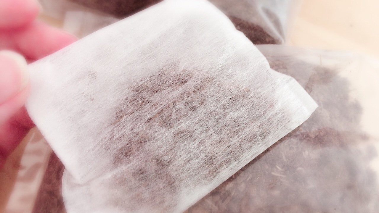 お茶のパックに竹粉を入れて気になるシューズの中に入れてから、下駄箱に片付けています。