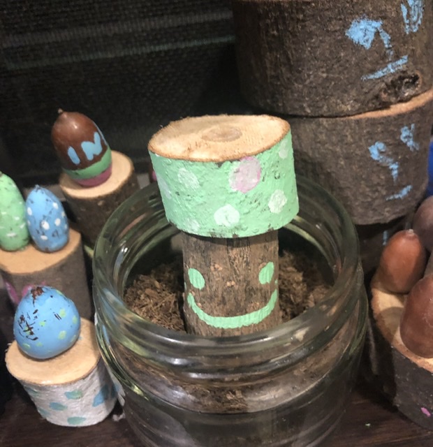 消臭効果も高いということで、トイレに子どもたちが作ったオブジェのようなものがあるので、竹粉の上に置いて使わせて頂いています。