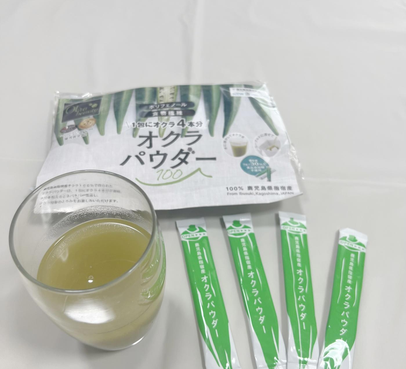 指宿市のオクラで作られたオクラパウダーを初めて飲んでみました。