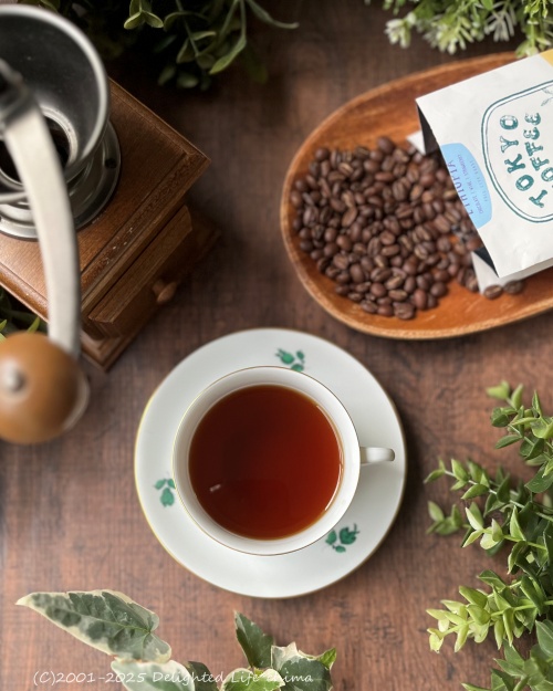 豆は手動ミルで2度挽きし、ハンドドリップで丁寧に淹れました。