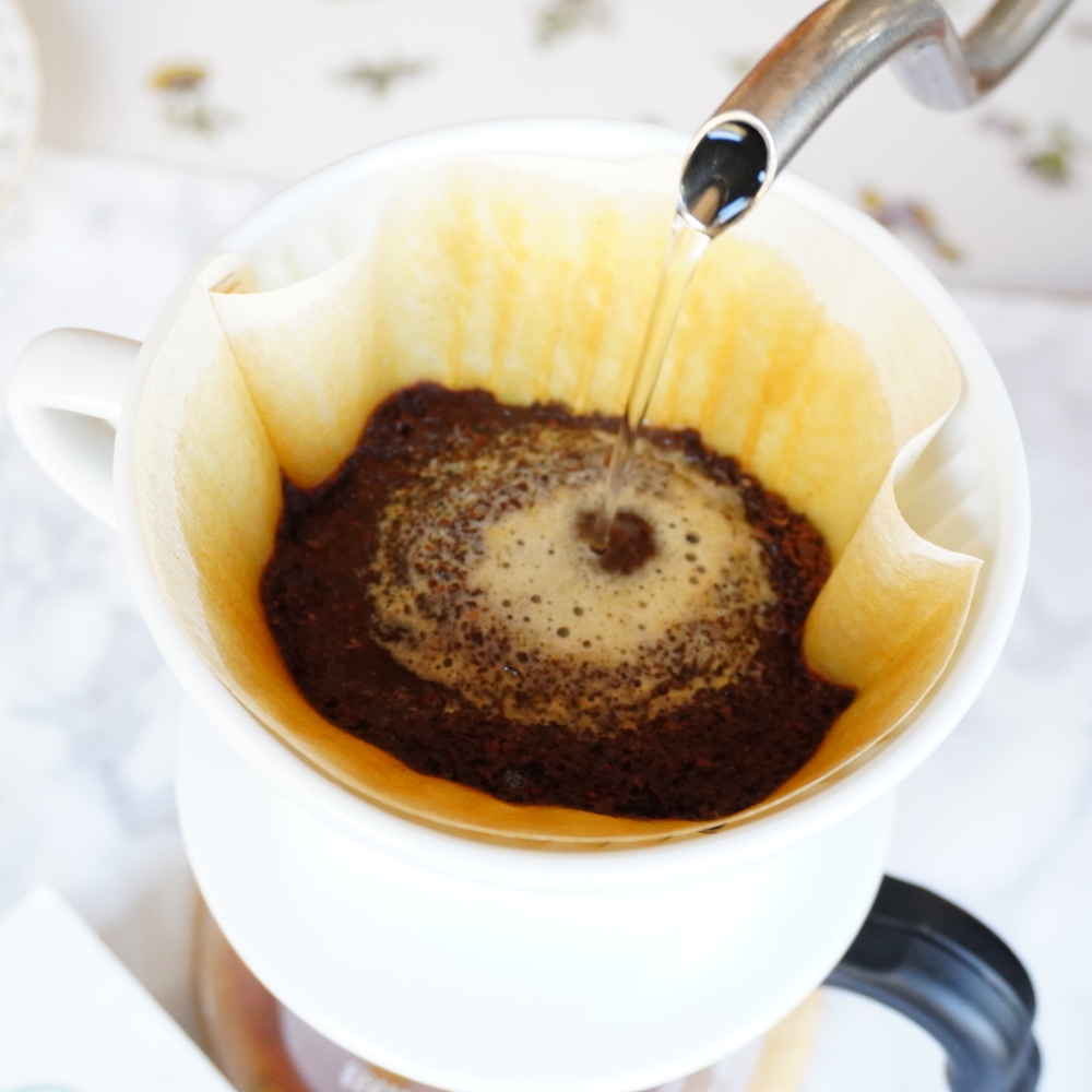 その後、のの字を描くようにゆっくりとお湯を数回に分けて注ぎます。