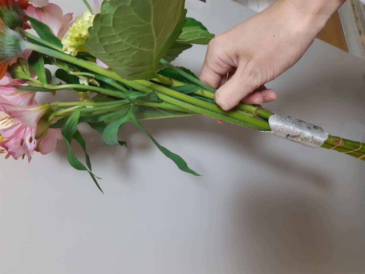 茎をくるんでみました。花の綺麗さとともに、茎の部分もおしゃれに輝いて見えます。