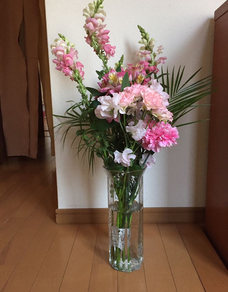 ちょうど花束をいただいたので、茎を縛っていたゴムをとり、ブーケキーパーで巻き直しをしました。
