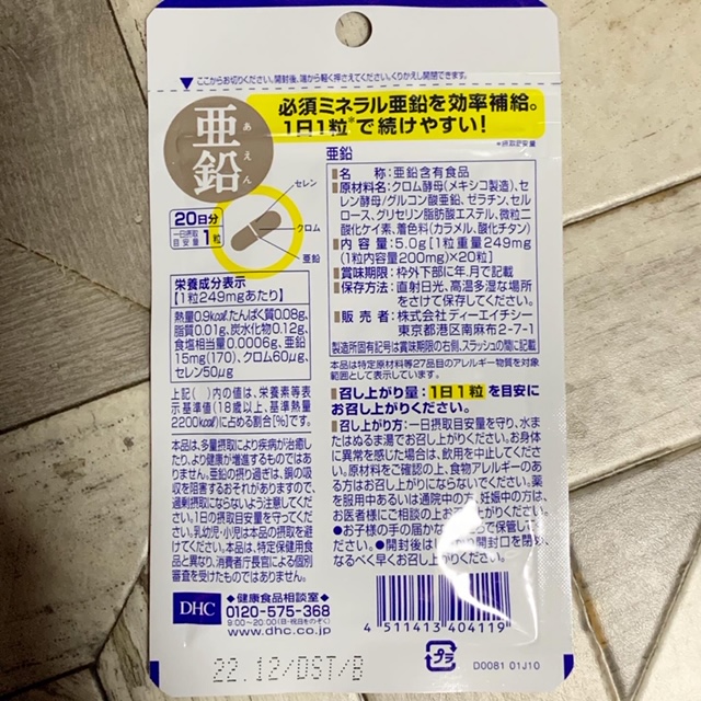 DHCの健康食品、亜鉛を飲み始めてみました♬