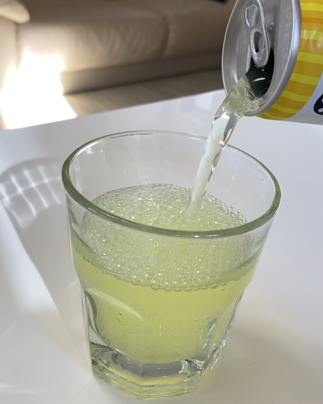 「強炭酸」とありますが、炭酸が苦手な方でも飲みやすいほどよい刺激で、個人的には「もう少し強くても好きかも?」という爽やかさでした。スッキリ柑橘系のフレーバーなので、食事との相性も良く、夕飯のお供としても優秀です。