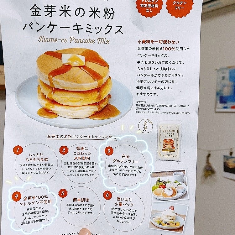 味ももちろん美味しくて、友達とホームパーティーをする時には絶対普通のパンケーキミックスではなくこの金芽米の米粉パンケーキミックスを使いたいと思いました。