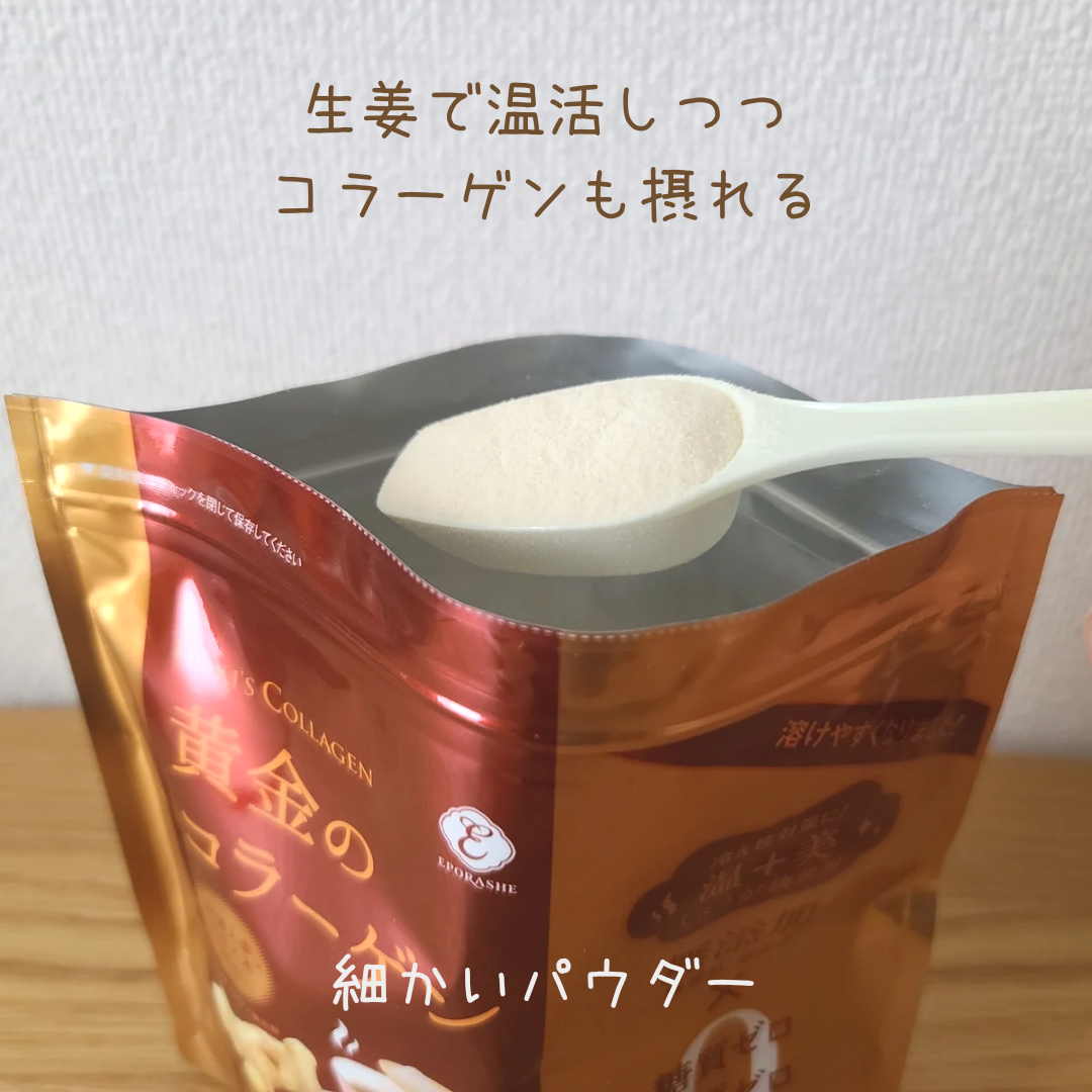 さらさら細かい粉末で飲み物に溶けやすいので、これからの季節温かい飲み物に手軽に溶かして習慣化しやすいですよ。(お水や冷たい飲み物には溶けないので注意!)