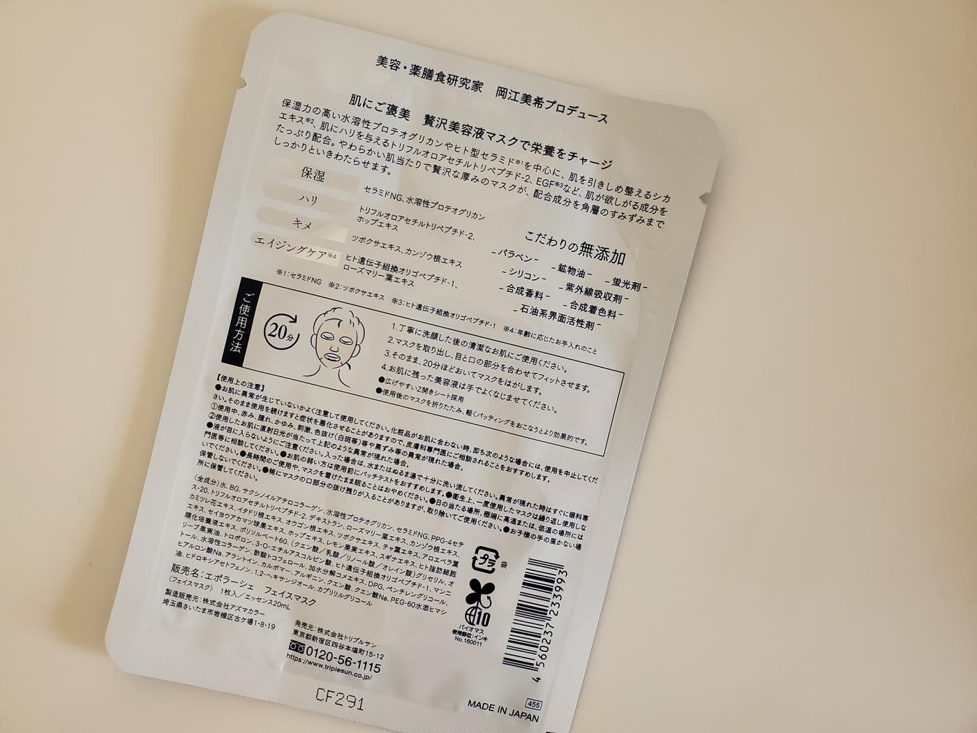 シートマスクは「Z開き」を採用しているので、ストレスを感じることなくさっと開くことができ、国産コットン100%の少し厚めのマスクが美容液をしっかり含んでいて、つけている間、いつも通り家事をしていてもはがれることなく、顔を優しく包みこんでくれました。
