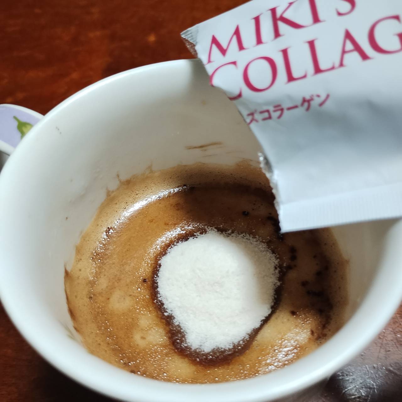 今回はトライアルセットなので、個包装タイプになっていて1回分が分かりやすい!白っぽい顆粒タイプになっていて、コーヒーに混ぜて飲んでいます。温かいコーヒーなら溶けやすいし、コラーゲン独特の風味は感じず、とても飲みやすいです。甘味料(ステビア)が使われているから、そのまま舐めても少し甘さを感じました。