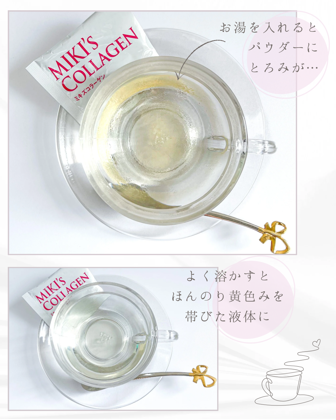 お湯を注ぐと粉末はとろみを帯びて、スプーンでかき混ぜるとほんのり、とろみのあるテクスチャーに。