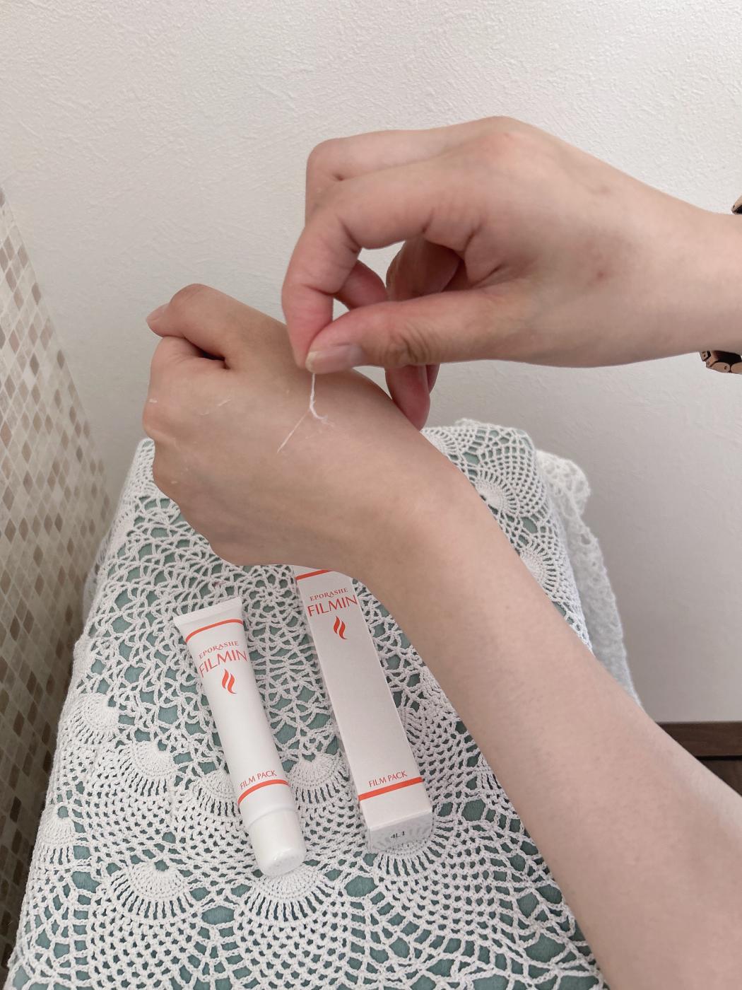 フィルミンは、美容液の上から薄く塗るだけで数分後にフィルム状に変化🪞