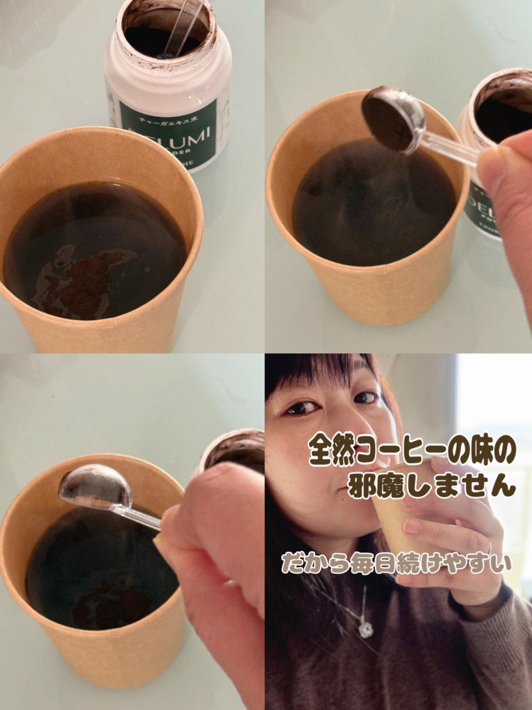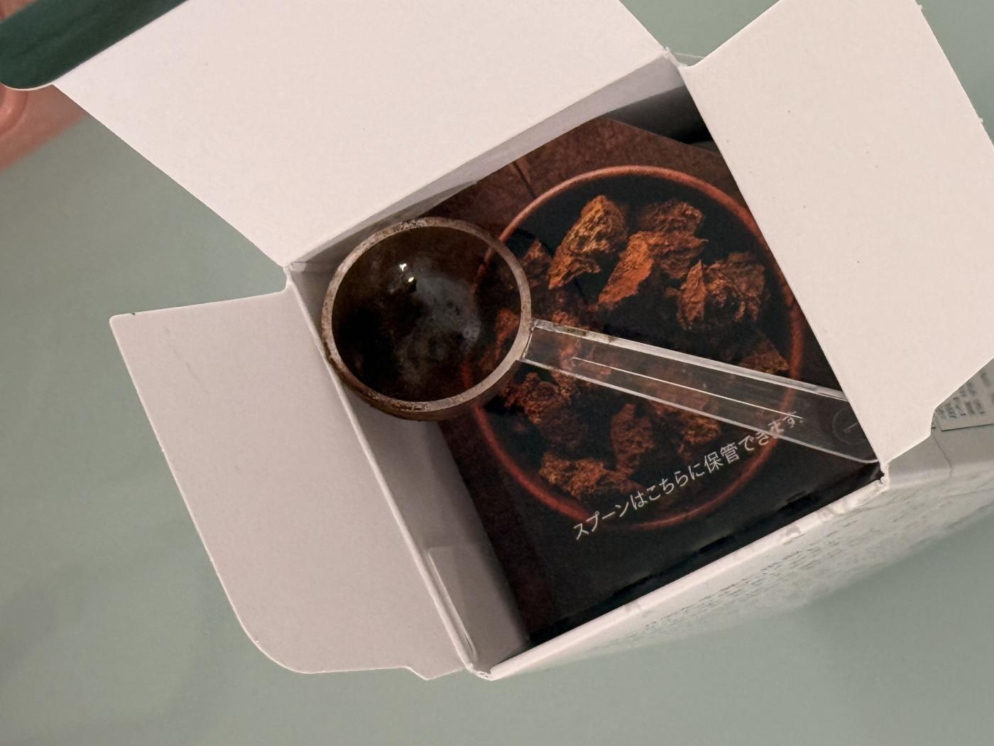 見た目は濃い茶色ですが、味は驚くほどクセがありません。なので毎日コーヒーに混ぜたりしています。粉末が細かいのでサッと溶けるのも嬉しいポイントです。