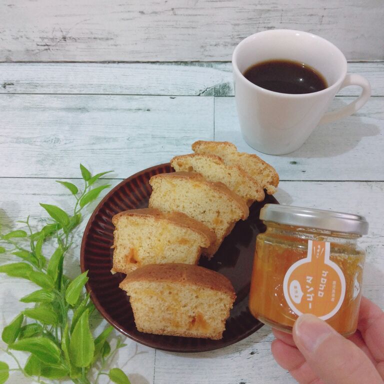 私はパウンドケーキの中に無添加 鹿児島県産ゴロゴロマンゴーを入れて作りました。