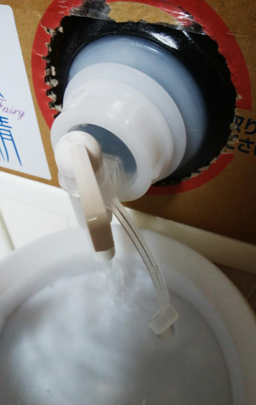 まず届いたらダンボールを確認し注ぎ口が上側になるように適当な場所に置きます。