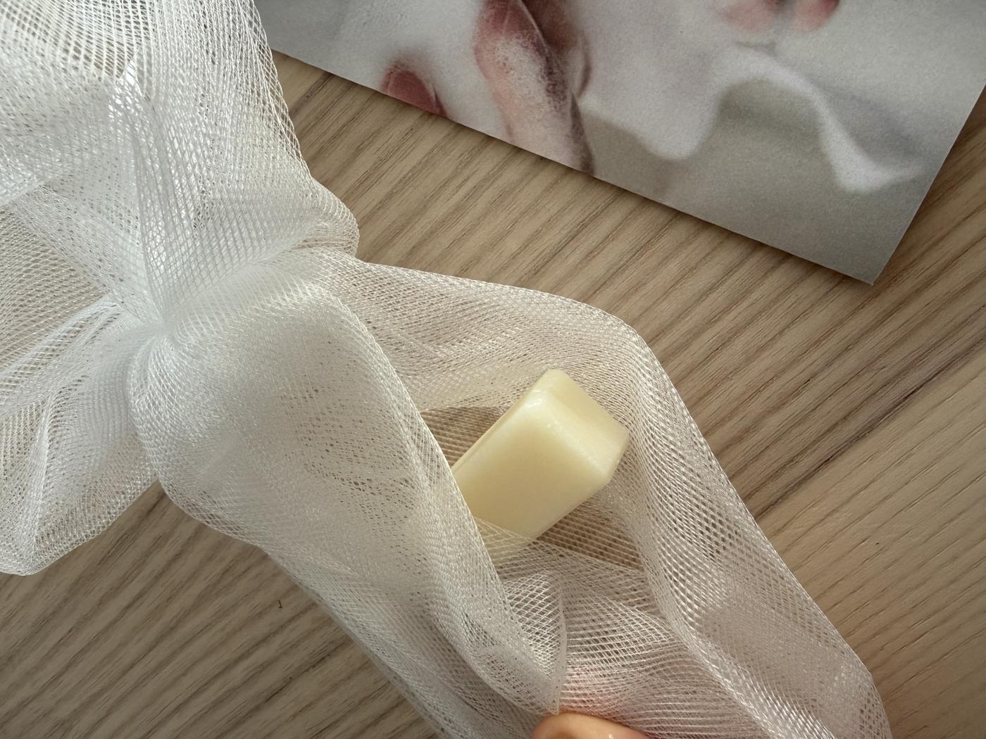 ネットには石鹸が入るポケットがついているので