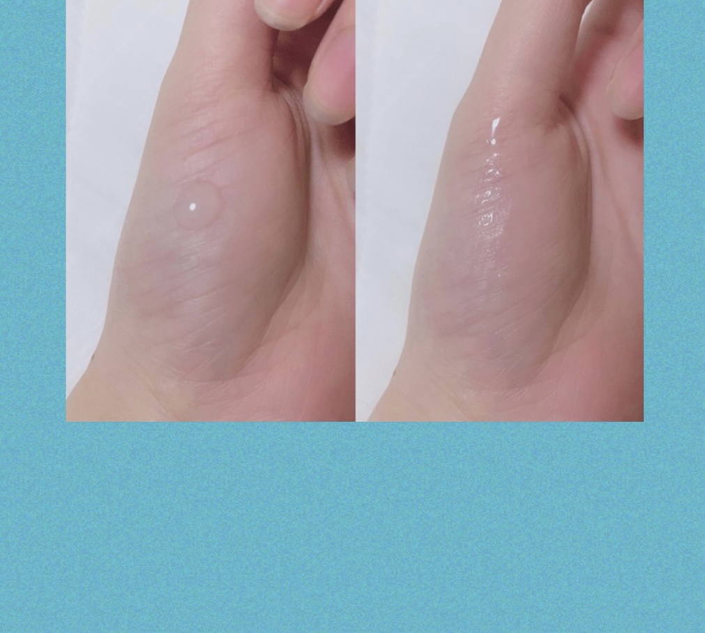 手に出すと乳白色のややとろみの有る濃厚なテクスチャーでお肌にスーっと馴染んで素早く浸透してくれます
