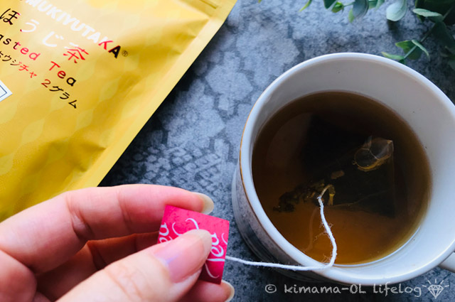 ほうじ茶って、普通は急須でいれたりするので後片付けが面倒だったりするので、なかなか飲まないんですが、ティーバッグタイプだと飲みたいときにすぐ飲めるし、後片付けも便利だし、いいですね。