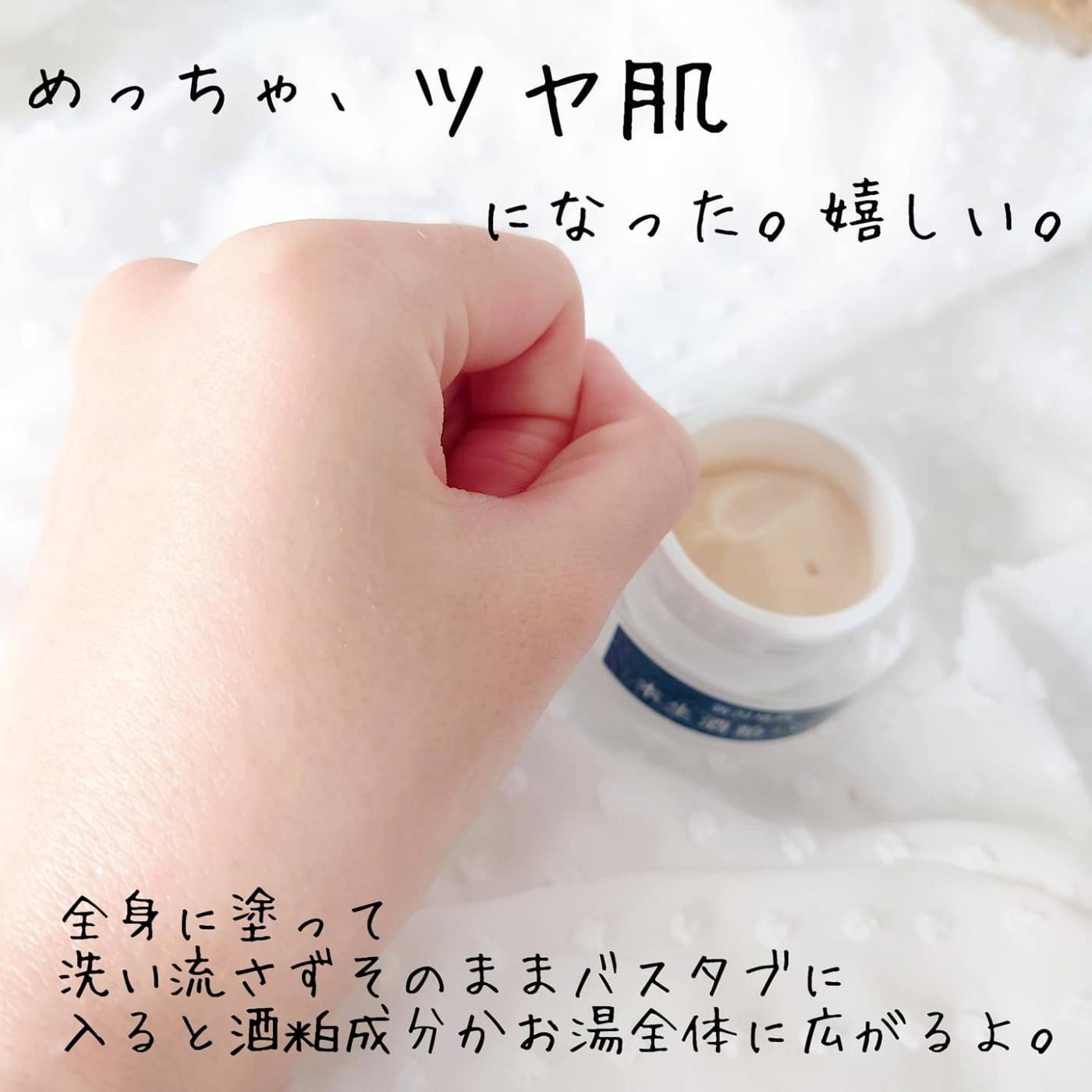 全身に使うこともできるのだけれど、そのまま洗い流さずバスタブに浸かると、酒粕成分がお湯全体にに広がり身体がつるつるになります!