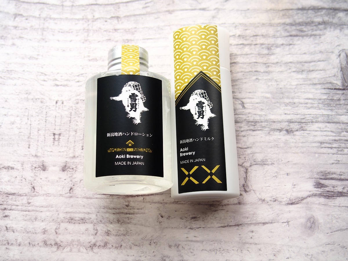 こちらの製品は各酒蔵の「日本酒」と「酒粕」を配合した、ハンドケアシリーズです。特に日本酒蔵で時には廃棄物となってしまう(超もったいないんですが)酒粕などを有効活用!サッパリするのに潤う”ローション”とサラッとするのに潤う”ミルク”として製品化したのが今回ご紹介する「新潟地酒ハンドケアセット」です。