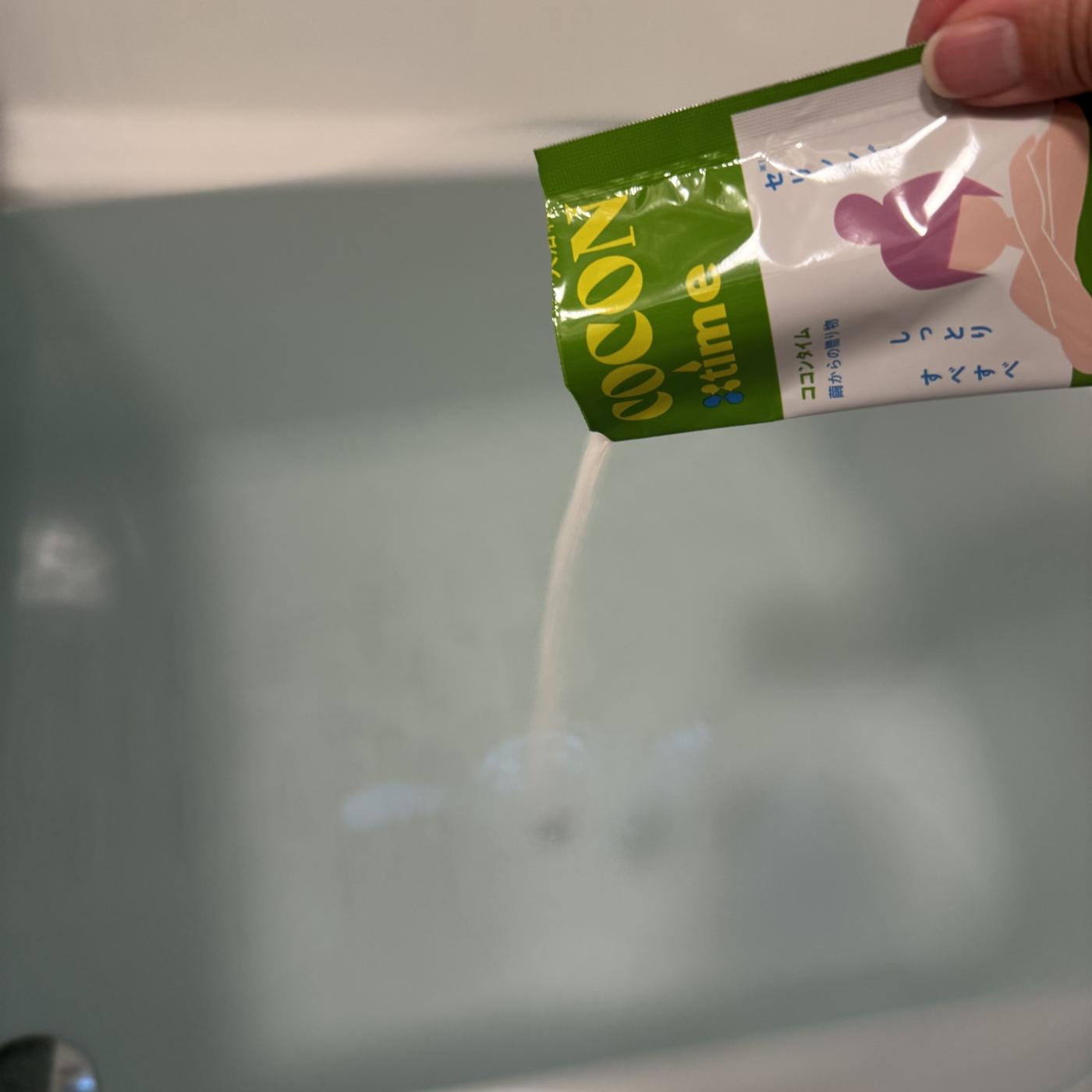 入浴剤はサラサラとしたきめ細かいパウダーで混ぜると乳白色のお湯になります✨