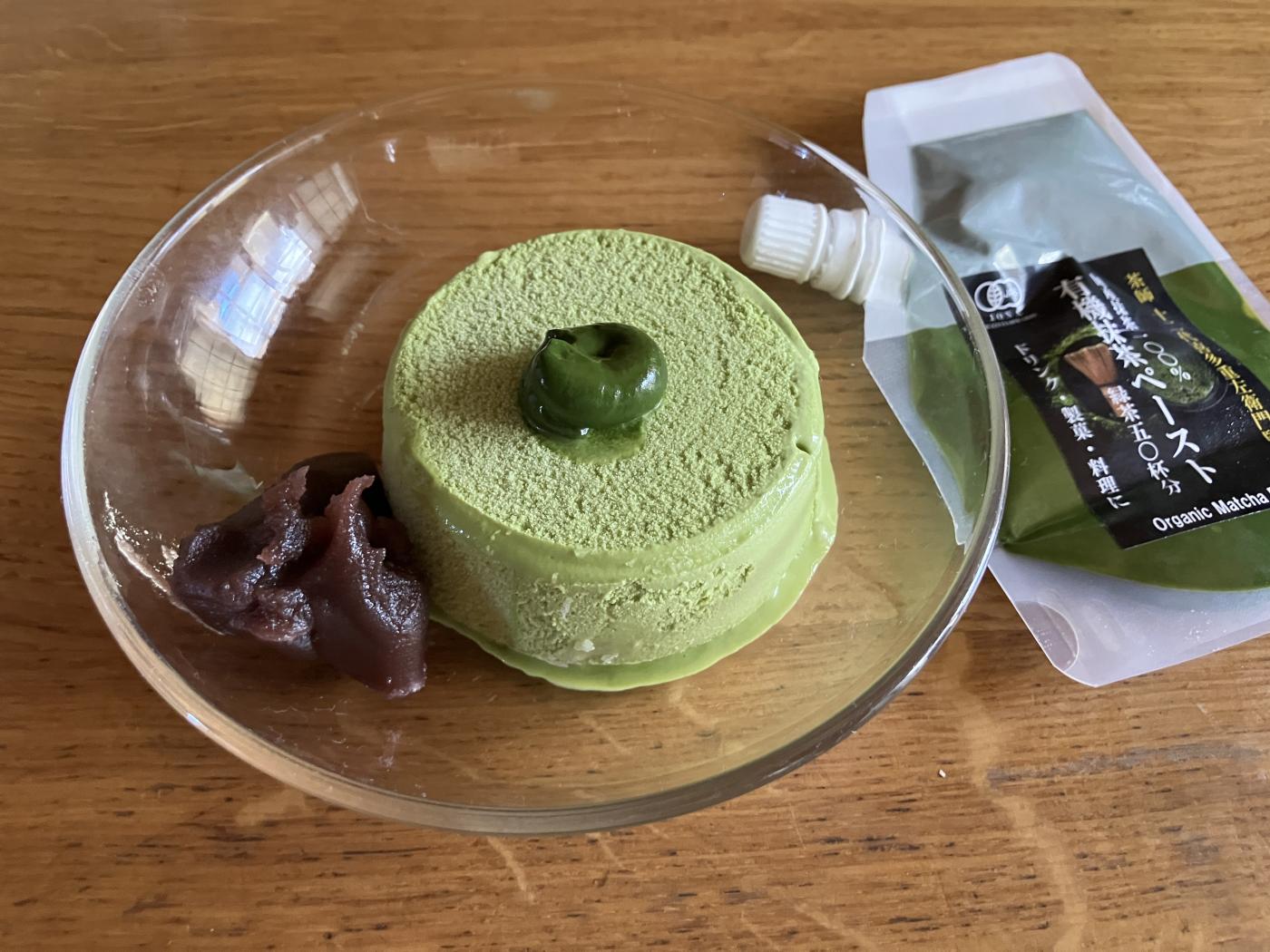 抹茶アイスにあんこを添えて、アイスの上に抹茶ペーストをトッピングしたものもつくりました。