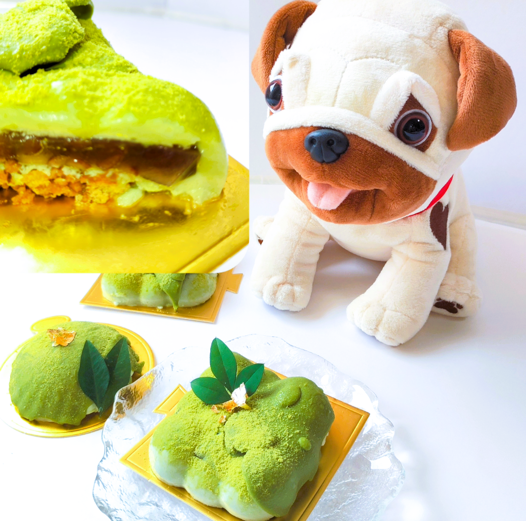 こちらも抹茶ムースの中に母手製の羊羹を忍ばせ、仕上げにホワイトチョコと有機抹茶ペーストで作ったグラッサージュショコラを掛けました💚
