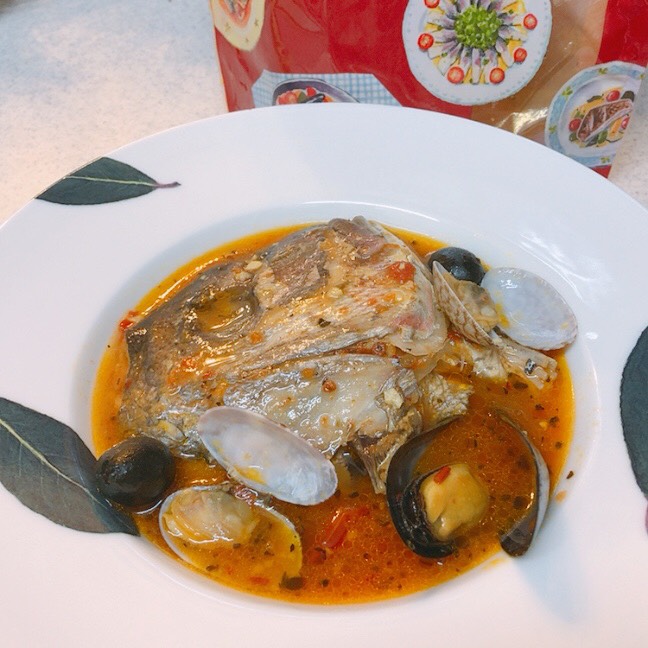 真鯛の骨や皮から出る旨みと、ムール貝やアサリから出る旨みがぎゅっと詰まっています?