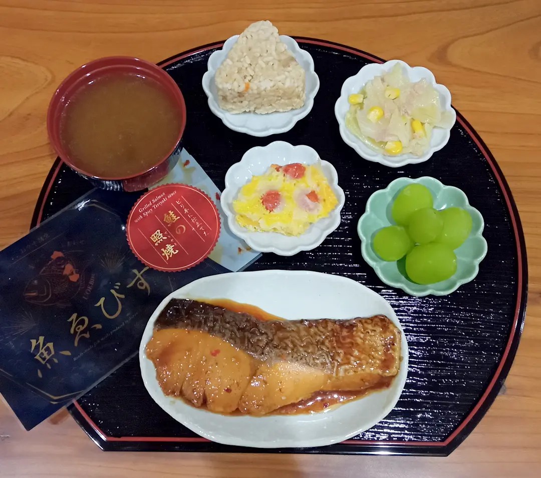 とろ鯖煮付け、鮭の西京焼、ブリかま柚子胡椒焼、