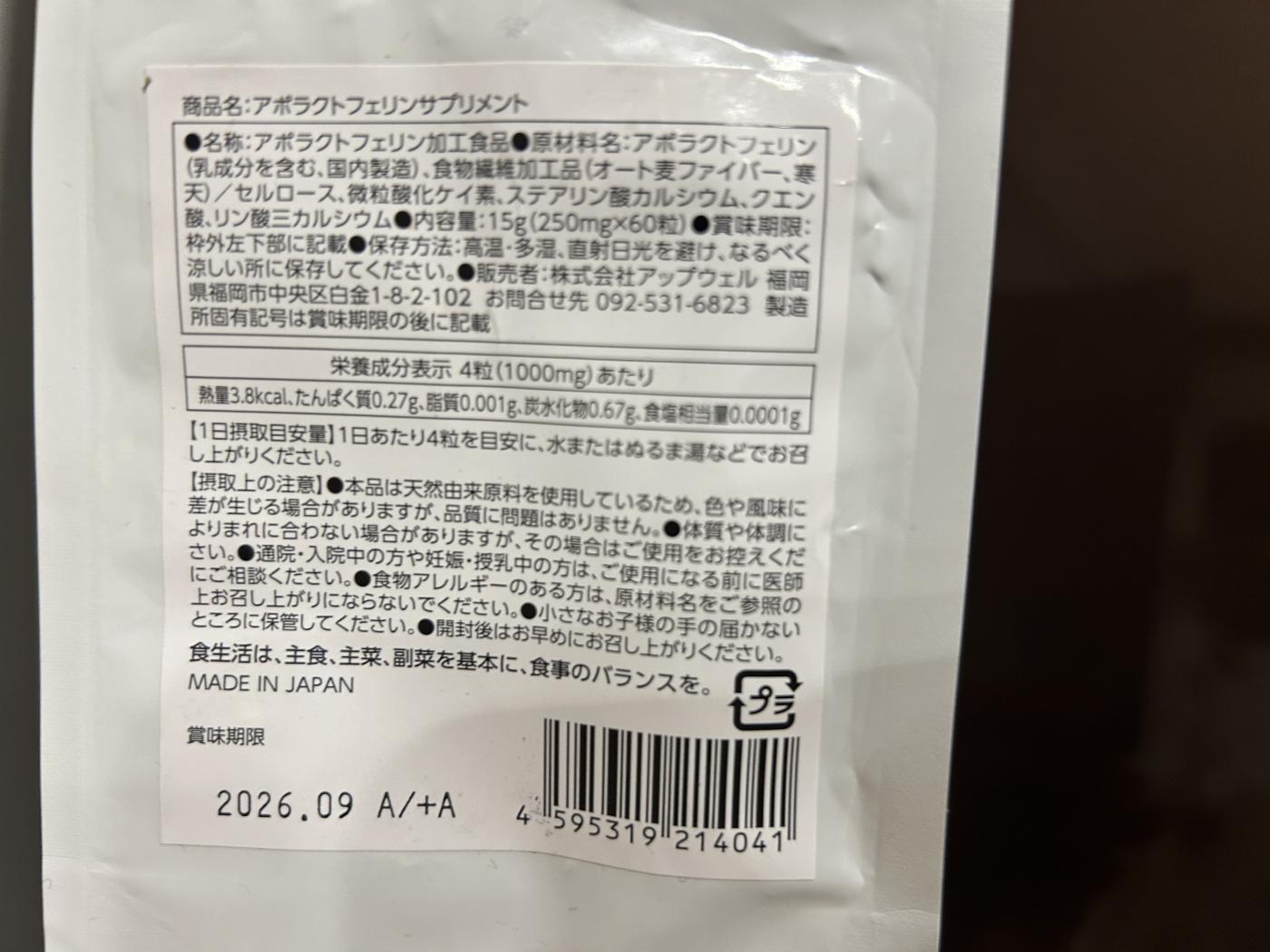 アポラクトフェリン自体の健康効果に加えて、免疫力をサポートする役割もあるみたいなので免疫力が低い自分にとってピッタリ!!だと思います。