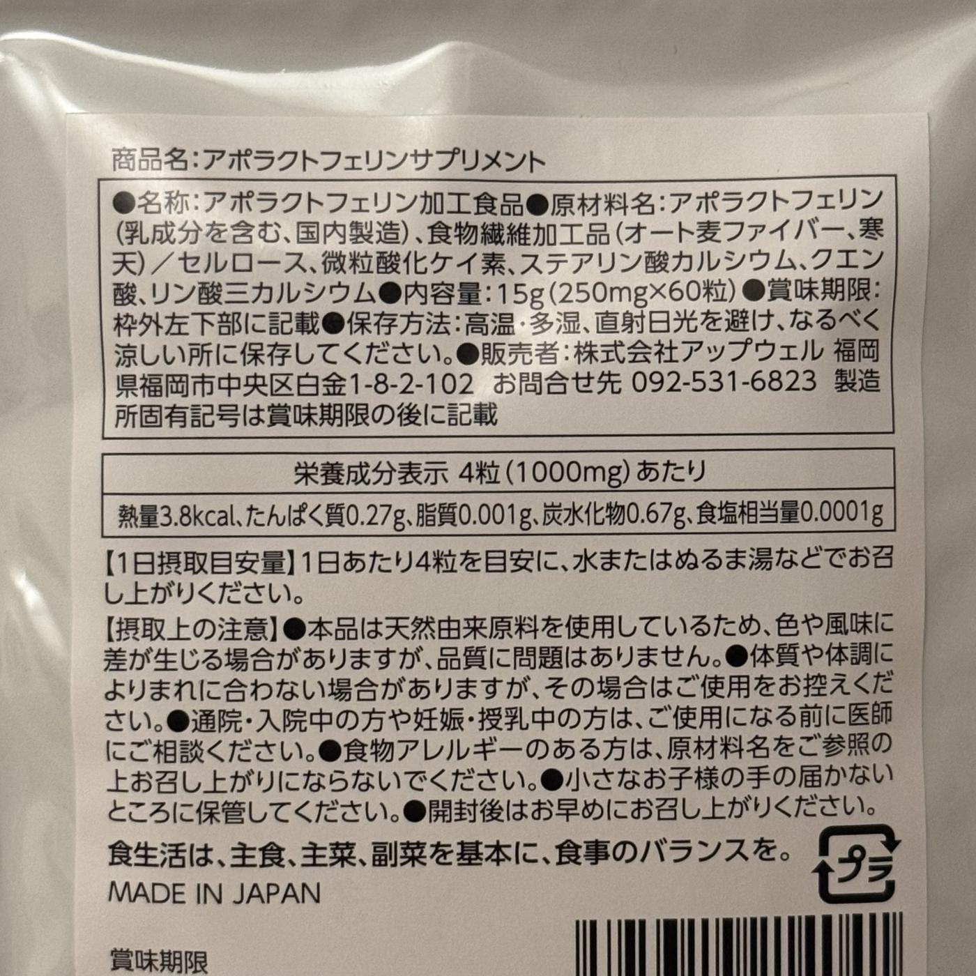 コエタスのモニターキャンペーンでもらった株式会社アップウェルさんの「アポラクトフェリンサプリメン...