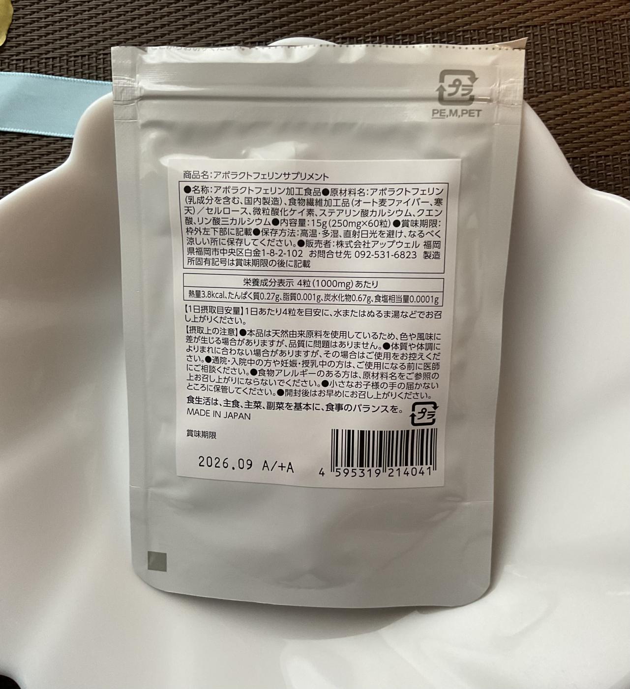 アポラクトフェリンサプリメント(約15日分)頂きました。