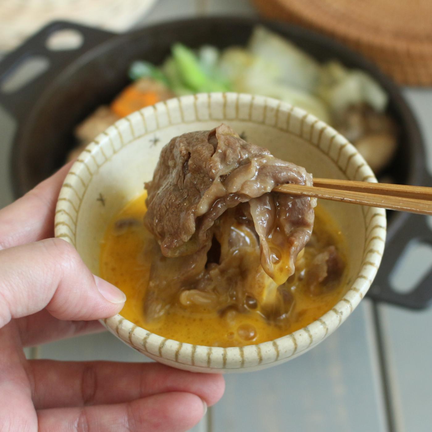 まずは鉄鍋で一人用のすき焼きを作ってみました!