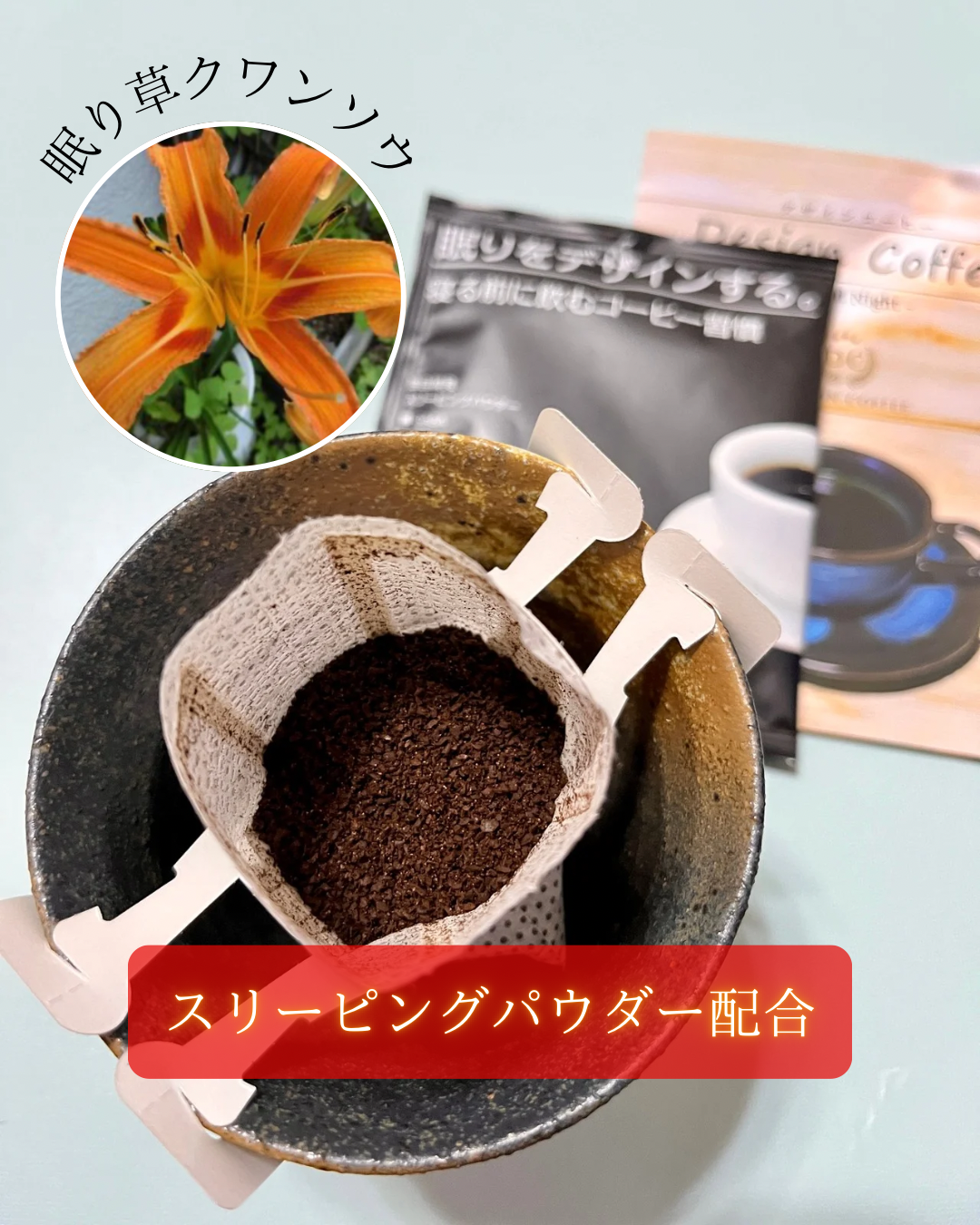 デザインコーヒーはカフェインレスなだけでなく、オリジナルのスリーピングパウダーが配合されています。