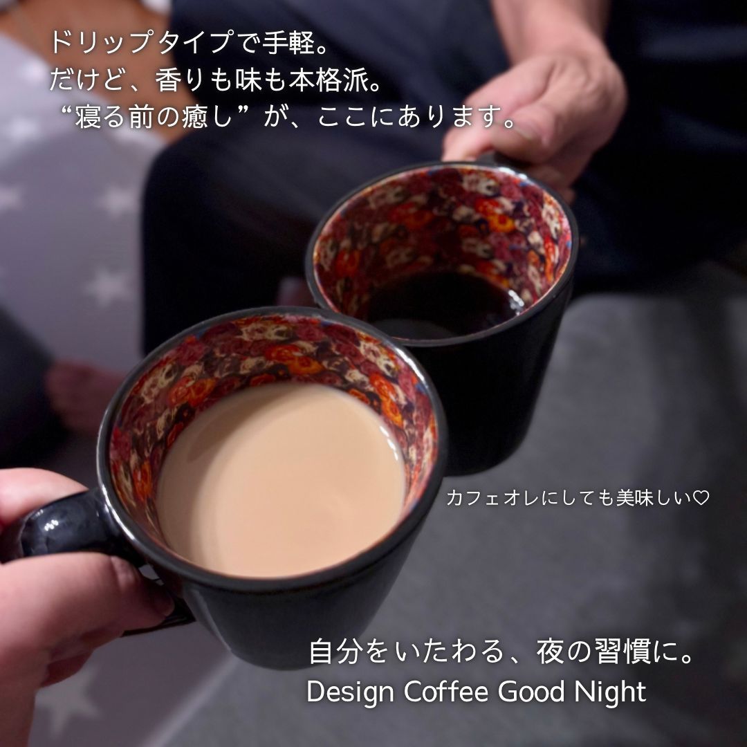 睡眠前にも安心して楽しめるカフェインレスコーヒー『デザインコーヒー グッドナイト』を試してみました。