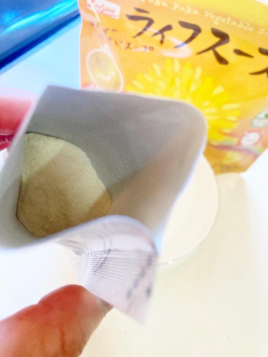 野菜コンソメ味の粉末タイプで、非常時でもお湯や水があれば、簡単にできるのも魅力です。