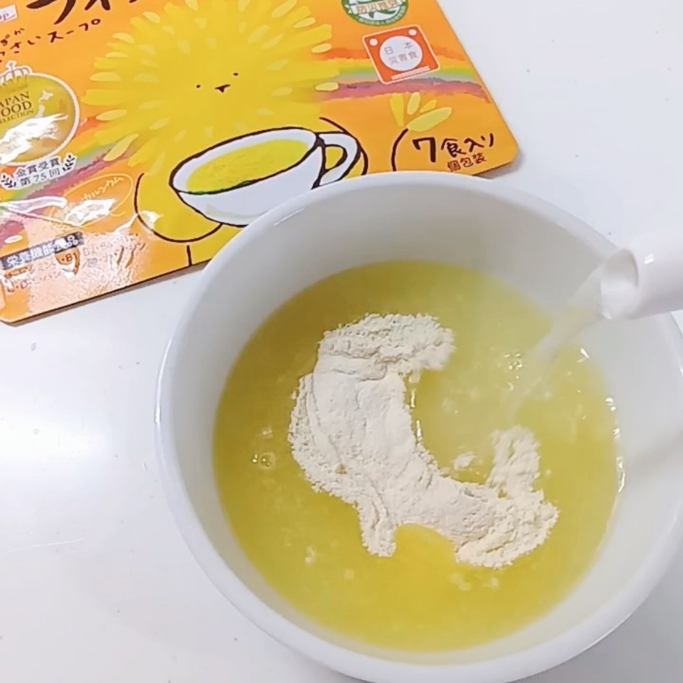 湯(or 水でもOK!)を注いで 10秒混ぜるだけで完成する粉末スープなんだけど、 野菜コンソメ味で美味し...