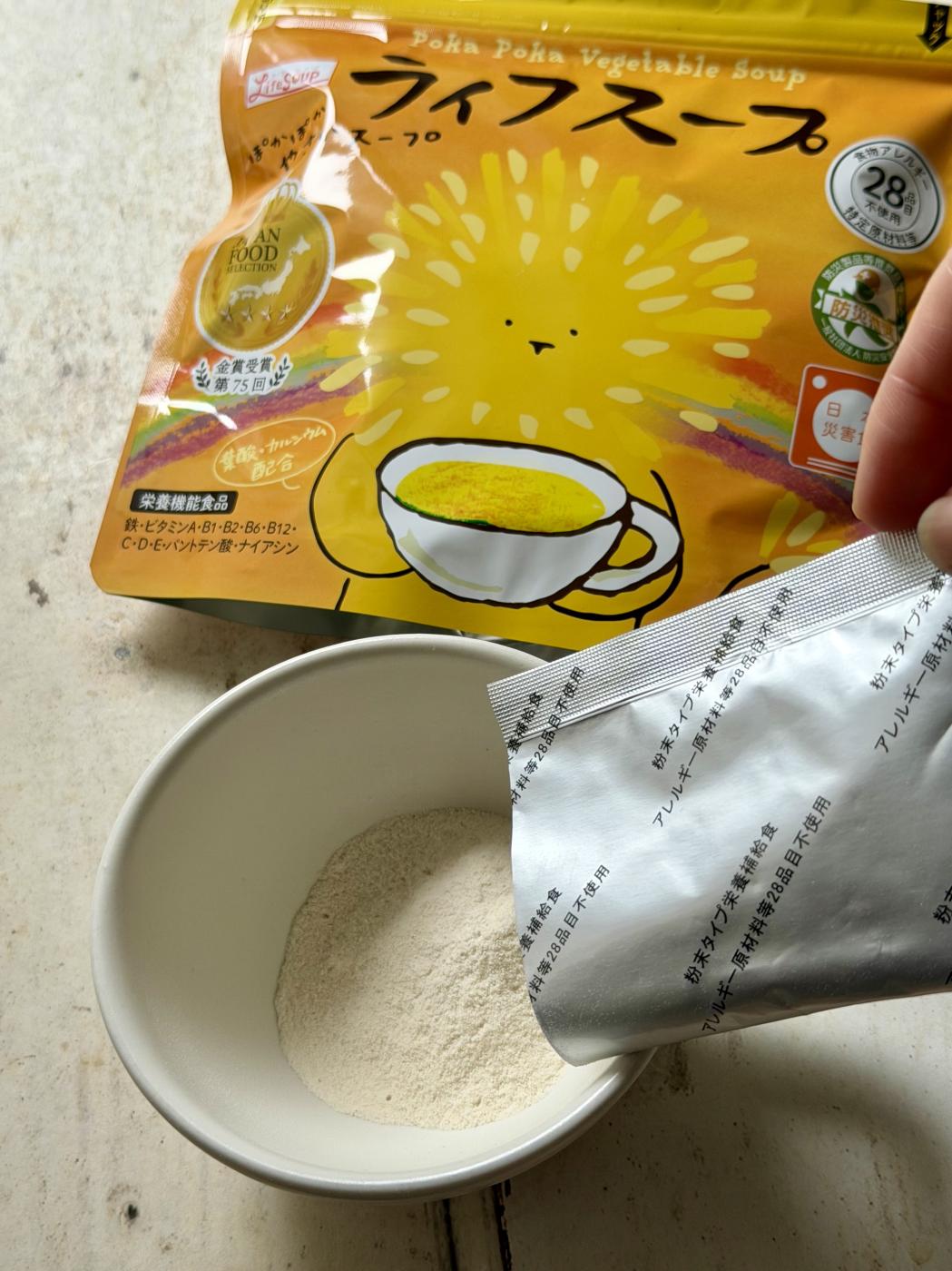 ベジタルアドバンス、ライフスープのレビュー🌼 長期保存可能な備蓄用粉末スープです。 🌝お気に入り...