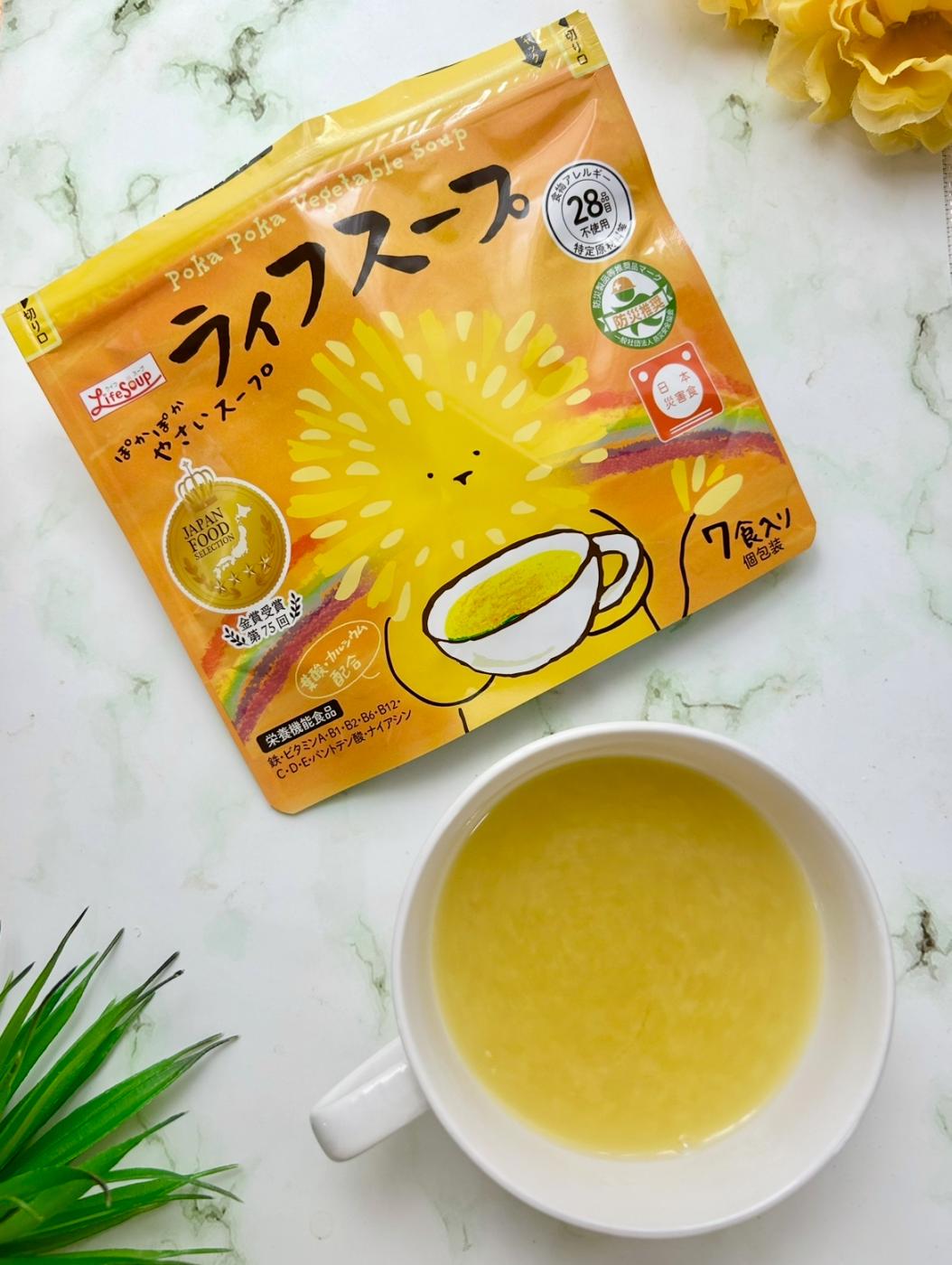 湯(or 水でもOK!)を注いで 10秒混ぜるだけで完成する粉末スープなんだけど、 野菜コンソメ味で美味し...