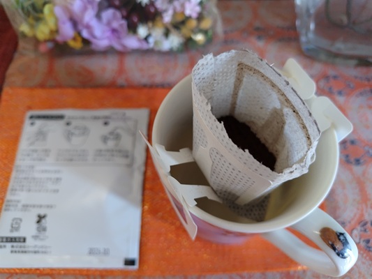 ドリップパックの口を開けてお湯を注ぐと、コーヒーの良い香りが部屋中を満たしてくれます。